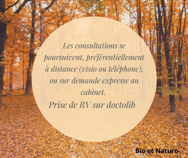 Durant ce confinement, les consultations se poursuivent. Je vous invite néanmoins à privilégier la téléconsultation (dont les modalités seront définies au préalable, la consultation pourra se faire en visio (sans masque, quel luxe !!!!) ou par téléphone, à votre convenance). Nous avons tous plus que jamais besoin de prendre soin de nous et de notre... Lire la Suite →